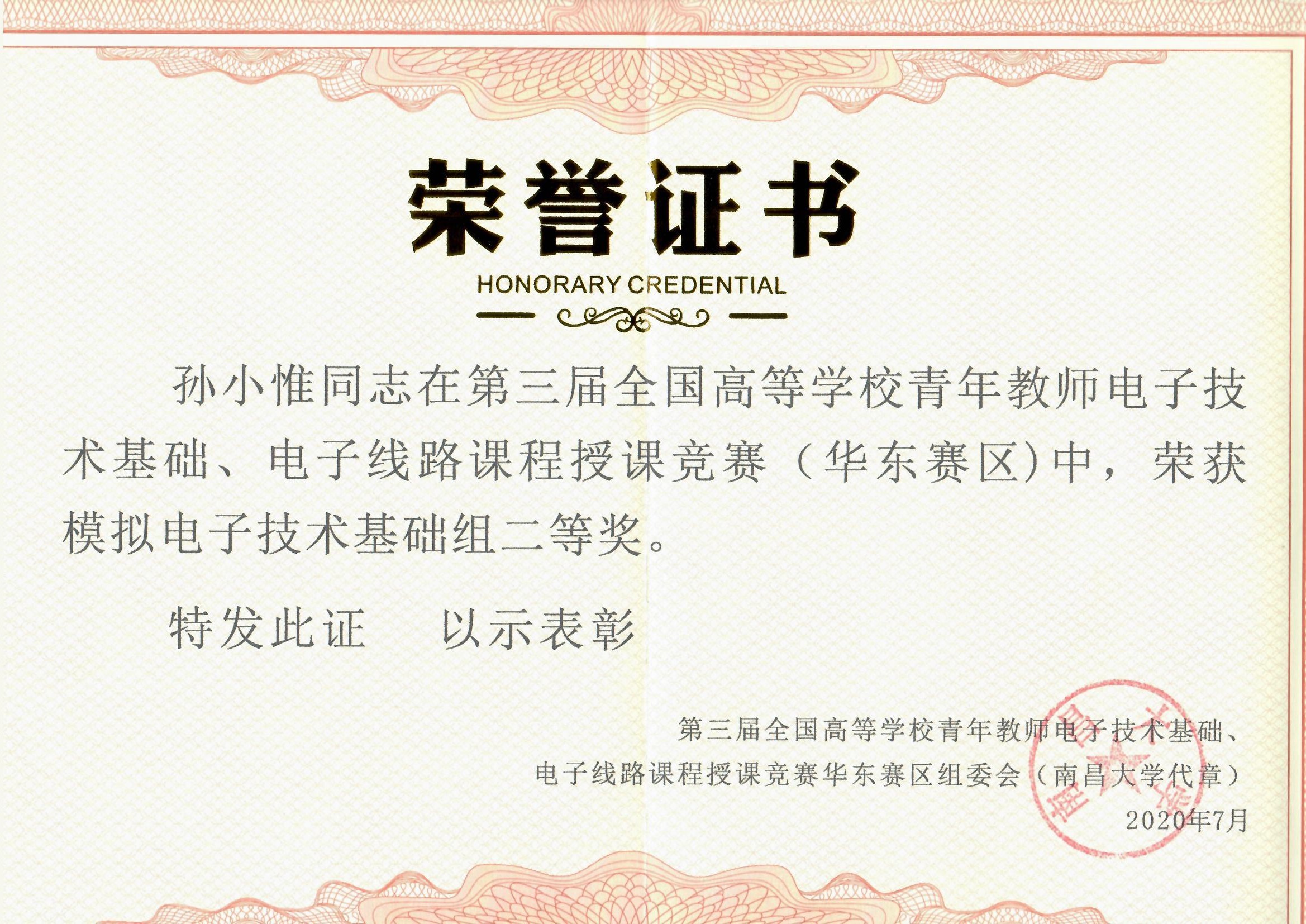 全国高校青年教师授课竞赛二等奖2