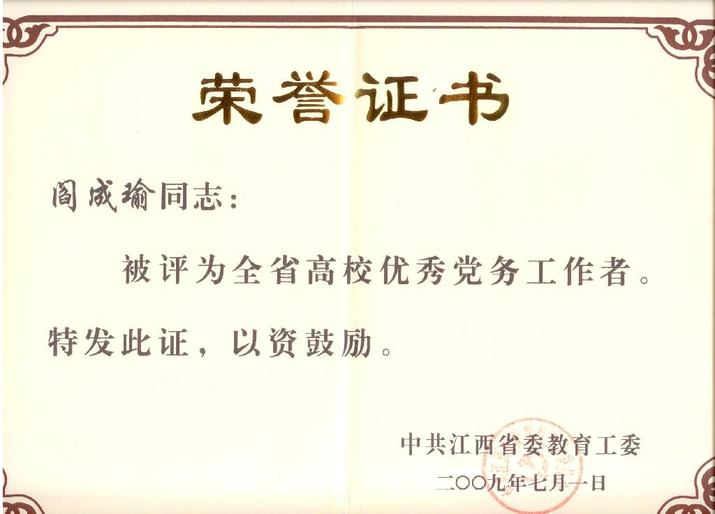 全省高校优秀党务工作者(阎成瑜)