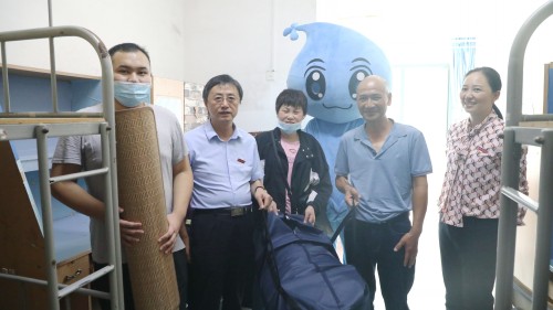 该名同学一行到达7栋宿舍楼报到现场,PA视讯平台志愿者积极搬运行李,帮助其顺利入住。走访中,金志农对该名新生表达了热烈欢迎,殷切询问了该生的身体健康状况、家庭基本状况等。同时金志农还勉励该生勇于克服困难,保持积极乐观的心态,尽快适应老员工活,早日成为社会栋梁。随后,金志农一行与员工家长进行了亲切交谈,并现场向该同学发放了爱心大礼包,送上了床上用品。