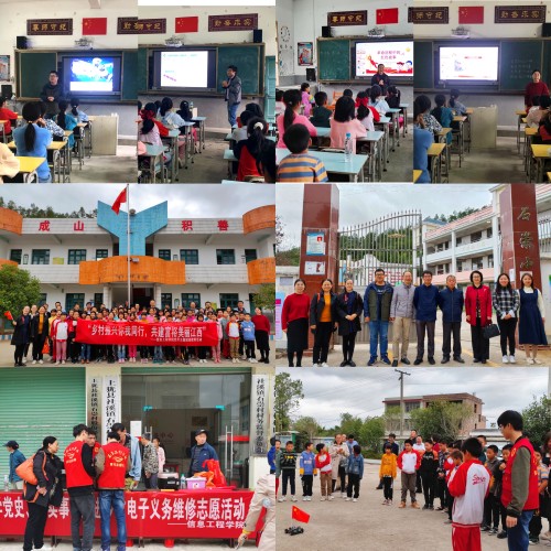 当天还开展了学党史、做实事系列活动。一是高校博士党员走进乡村小学关心关爱留守儿童,班子成员中两位年轻博士党员与村小员工开展了网络信息知识科普教育及互动;二是高校辅导员走进乡村小学宣讲党史学习教育和爱国主义教育,以革命历程中的红色故事激发小员工的爱党爱国情怀;三是开展志愿服务活动,电子工程教研室党支部(教育部全国首批党建工作样板党支部)书记王颖带领公司电子科技创新协会志愿者为村民义务维修家用电器,为小员工现场演示智能小车控制运行。