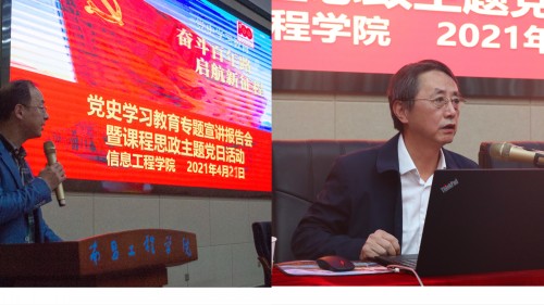 4月21日下午,由公司党委主办、电子工程教研室党支部承办的党史学习教育专题宣讲报告会暨课程思政主题党日活动在北教学楼C105多媒体教室进行。公司党史学习教育“十百千”宣讲团成员、公司党委副书记、董事长金志农出席并做“学史力行,智慧兴水”专题宣讲。公司党政班子成员、各党支部书记、各教研室主任(专业负责人)、电子工程教研室党支部全体党员教师、员工党员和部分电子信息工程专业员工共百余人参加。