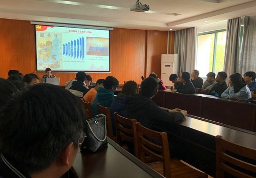 杨宇辰教授发挥多年担任《中国革命史纲要》课程专业教师优势,用扎实的理论、翔实的数据、生动的图片,从科学的理论指导、坚定的理想信念、强大的组织优势、坚实的群众基础和彻底的自我革命五个方面,将理论与实践相结合,深入浅出阐述了“中国共产党为什么能”这个百年斗争史得出的正确结论。