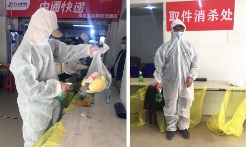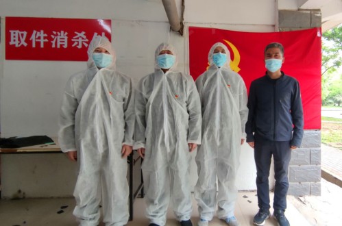 5月1日-5日期间,根据公司统一安排,公司教师党员先锋队队员刘祖涵、钱立峰、阮晶晶、肖美霞、徐晨光等5位老师在公司快递中心开展志愿服务,劝导取件人员自行拆除快递外包装,并对所取快递进行消杀后方可离场,有效切断病毒扩散和蔓延途径,减少快递物流带来的传播风险,有力保障了师生生命安全和身体健康。