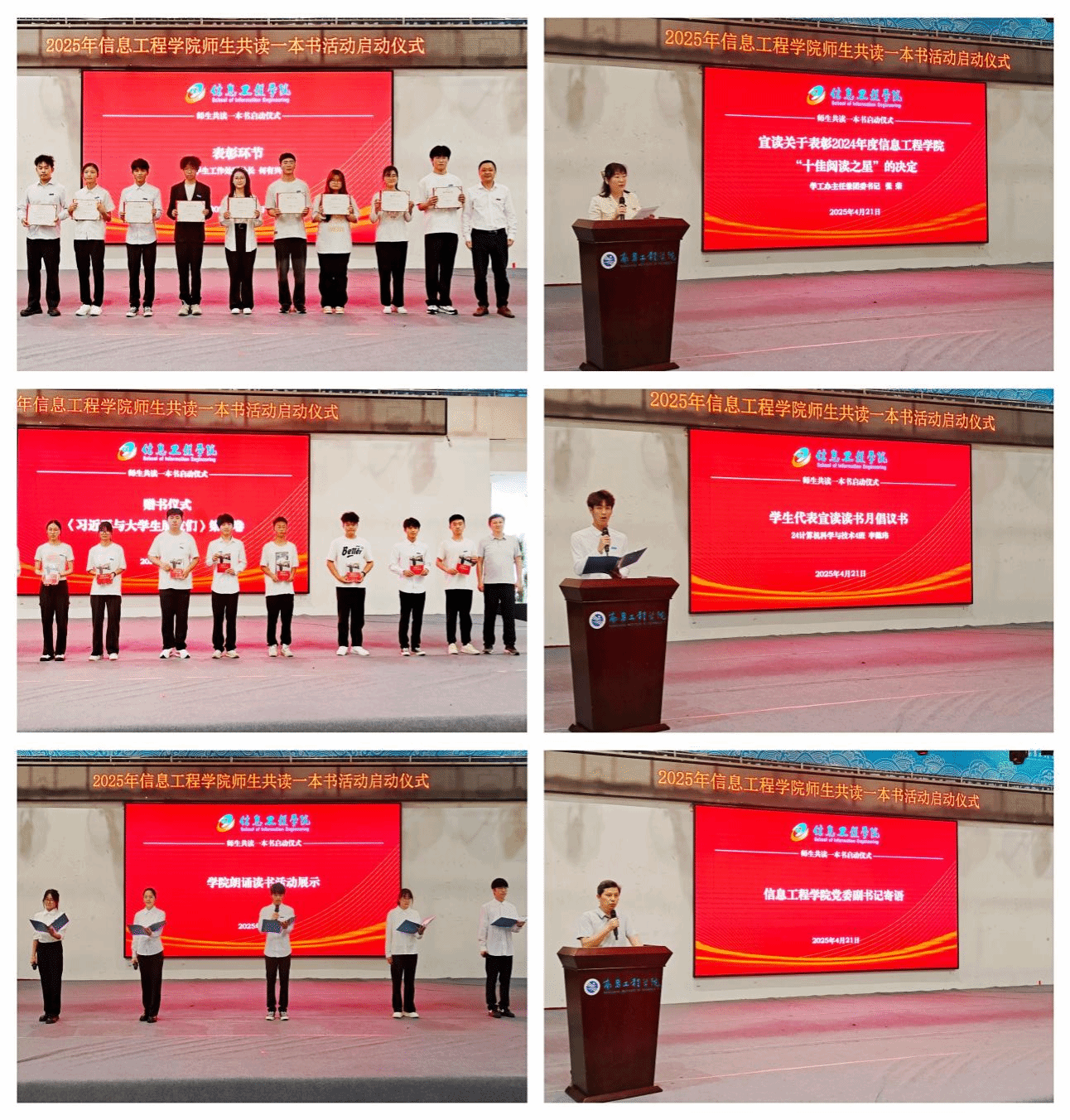 启动仪式以“世界读书日三重奏”读书活动体系为核心展开,系统解读了读书活动方案,构建起习惯养成、互动交流、深度思考的阅读生态。随后,活动宣读了表彰文件并为2024年度PA视讯平台“十佳阅读之星”进行了颁奖,激励信工学予以榜样为引领,深化阅读实践。在师生共同见证下,公司员工工作负责人为各班级员工代表赠上《习近平与老员工朋友们》第二卷一书,这份饱含期待的礼物传递着公司“以文化人、以书育人”的教育理念,引发在场师生的强烈共鸣。24计算机科学与技术4班员工代表李懿玮铿锵有力的宣读读书月倡议书,让我们放下手机,捧起书本,在经典中找寻精神坐标,道出了新时代青年对深度阅读的深切呼唤。活动尾声,公司员工代表们接力朗诵《习近平与老员工朋友们》第二卷书中内容。他们饱含深情地读到:“青年代表的未来,就是中国的未来。”“志存高远,敏于求学,学有所成,锻炼成才。”用声音传递了读书热情,现场感受了文字的魅力。最后,公司员工工作负责人寄语同学们:期待每位学子在阅己中认清精神坐标,在越己中突破认知边界,在悦己中抵达心灵自由,让书香成为青春最隽永的注脚。