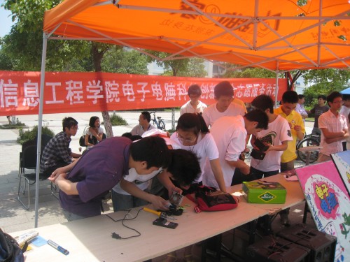活动期间,电子协会成员细心对送来维修的物品进行登记,进行免费检查与维修,耐心解答现场师生的疑问,并讲解了日常生活中如何去维修电子产品的常见故障。整个活动现场气氛融洽,电子协会成员发挥团队的精神共同完成各项检查维修工作。