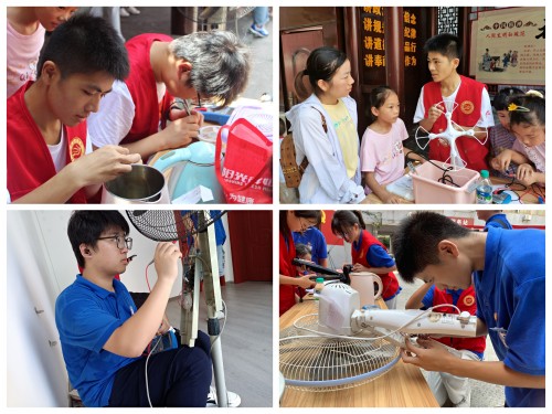 活动现场,长堎镇居民们在点位前有序排起长队,将家电送到维修点让团队成员修理。团队成员谢钦峰、王成福为主要修理员,凭借自己所学专业知识与本领,将电路理论知识与电焊实践经验投入到家电维修中,其余队员积极协助开展家电维修活动,并与居民热心热情沟通,解决居民们的需求。团队成员在摆摊设点进行义务维修的同时,还积极地下至相邻间讲解家电使用和保养方法,同时温馨提示危险用电行为和排查用电隐患,并宣传安全用电知识。