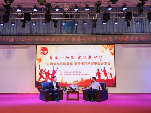 分享会上,第22届“江西青年五四奖章”获得者邓承志通过现场访谈和故事分享的形式,立足个人工作实践,用朴实生动的语言分享了自己成长的心路历程,生动展现了一位青年教师在新时代如何在逐梦路上将个人梦想与社会发展相结合,并以奋发有为的态度披荆斩棘从而实现人生理想,有力的诠释了新时代青年的使命与担当。随后,邓承志与现场青年观众进行了交流互动。他提出,习近平总书记对青年提出的六点希望体现了党中央对青年一代的关爱,作为当代青年,我们都应该做一个人生有理想、双肩有担当、手上有书本、心中有感恩的“四有青年”。