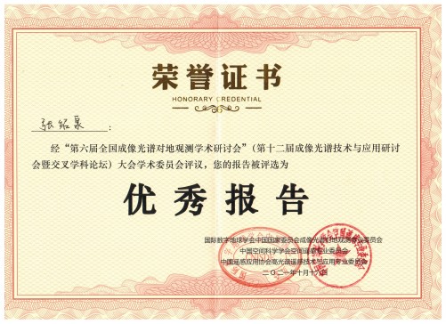 2021年10月14至16日,第六届全国成像光谱对地观测学术研讨会在浙江省宁波市召开。会议以“成像光谱对地观测与生态文明建设”为主题,共谋成像光谱对地观测技术的新发展。公司张绍泉博士应邀在“成像光谱遥感解混与亚像元制图”分会场作题为“联合空谱信息的高光谱遥感图像稀疏解混”的报告,报告介绍了公司智能视觉信息处理与应用团队在高光谱遥感图像空谱稀疏解混方面取得的最新成果,受到与会学者的广泛关注,进一步扩大了公司在相关领域的知名度。经专家评审和大会学术委员会评议,该报告获优秀学术报告奖。另:PA视讯平台李璠老师也应邀参会。(文/图 张绍泉)