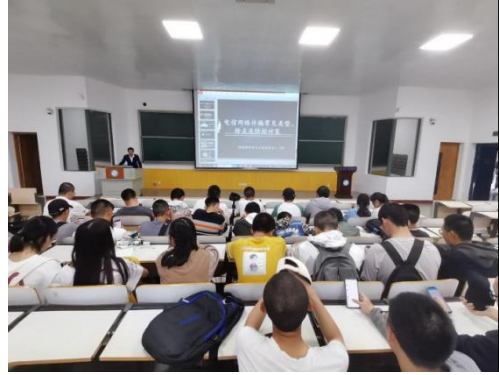 讲座中,辅导员老师首先以PPT的形式向同学们展示了各种类型的网络诈骗和校园贷,同时由此深入讲述了诈骗与校园贷的危害,并普及了安全防范知识。随后,同学们互动环节中,纷纷发表辨明电信诈骗的方法,透彻分析了诈骗的常用手段与套路,告诫同学们提高警惕,切勿落入骗局。最后,老师结合真实案例,说明了遭遇诈骗和校园贷后要冷静思考、保留证据、及时上报的正确做法,并呼吁同学们认真学习防诈骗知识并积极宣传,共筑防骗安全线。