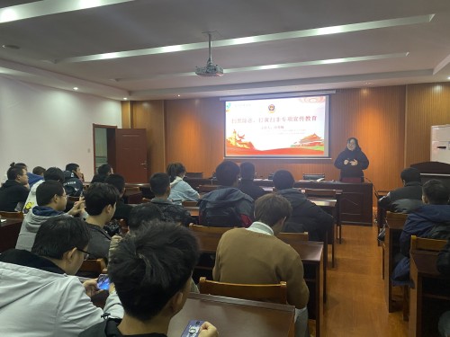 活动中,辅导员李家老师解释了“扫黄打非”的重要意义,对与会同学开展了“扫黄打非”专项斗争的工作布置。随后,田秀梅介绍了十类违法犯罪活动的打击重点,以PPT形式展示了各地开展“扫黑除恶”专项活动的宣传现场和最终成果,使同学们更好了解“扫黄打非”对社会的意义和良好作用。