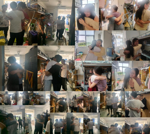 活动伊始,由班主任带领班委前往员工宿舍7栋、12栋开展“爱心拥抱行动”,同学之间的一个无声的拥抱、一句简单的“加油、你最棒、相信自己、你可以...”是自愈自己无穷的力量,交换温暖,互相鼓励,为心灵开一扇窗,让心灵沐浴阳光,让快乐充裕胸膛。