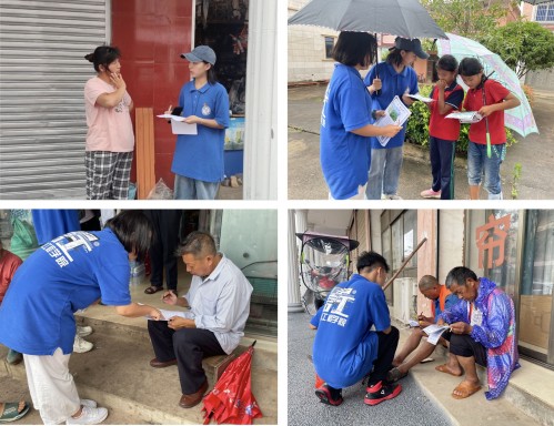 实践团成员派发宣传单与问卷调查