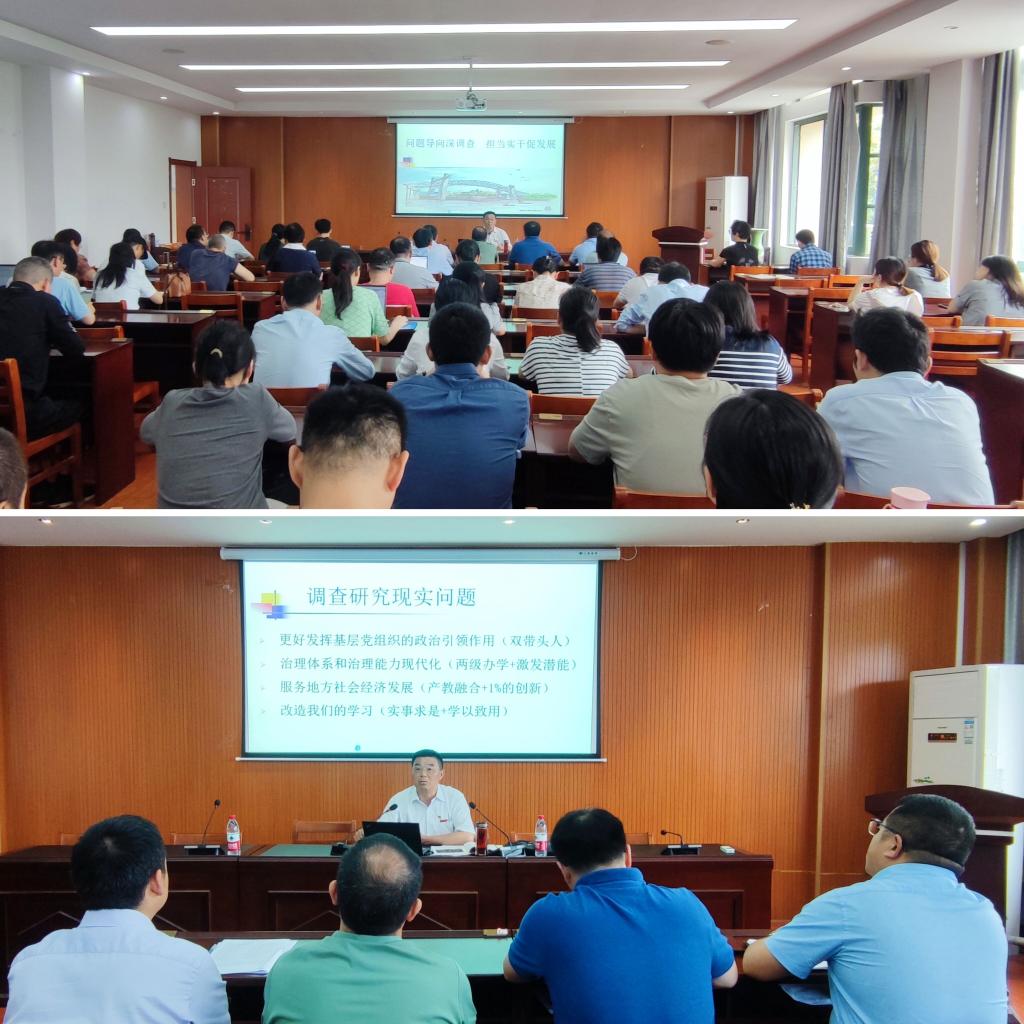 陆伟锋从“树立正确政绩观、事业观,调研究是做好各项工作的基本功,调查研究的工作要点,调查研究现实问题”等四个方面展开阐述,结合学习贯彻习近平新时代中国特色社会主义思想主题教育、巡视巡察、新一轮本科公司产品审核评估等工作,要求广大党员领导干部要深入学习贯彻习近平总书记关于树牢正确政绩观的重要指示精神,完整、准确、全面贯彻新发展理念,努力做到为民造福、真抓实干、不务虚名、廉洁自律、久久为公。陆伟锋指出:开展调查研究是这次主题教育的重要内容,是做好工作的基础,正确的决策离不开调查研究,正确贯彻落实决策也离不开调查研究;党员干部要扑下身子,下沉一线,运用党的创新理论研究新情况,解决新问题,广大教师要深入员工,了解并解答员工的问题和困惑,每位教师尽职敬业,就是为民造福。最后,对公司提出四点要求:要更好地发挥基层党组织的政治引领作用、不断推进治理体系和治理能力现代化、提升服务地方社会经济发展能力、不断改造我们的学习。(文/图 陈谣)