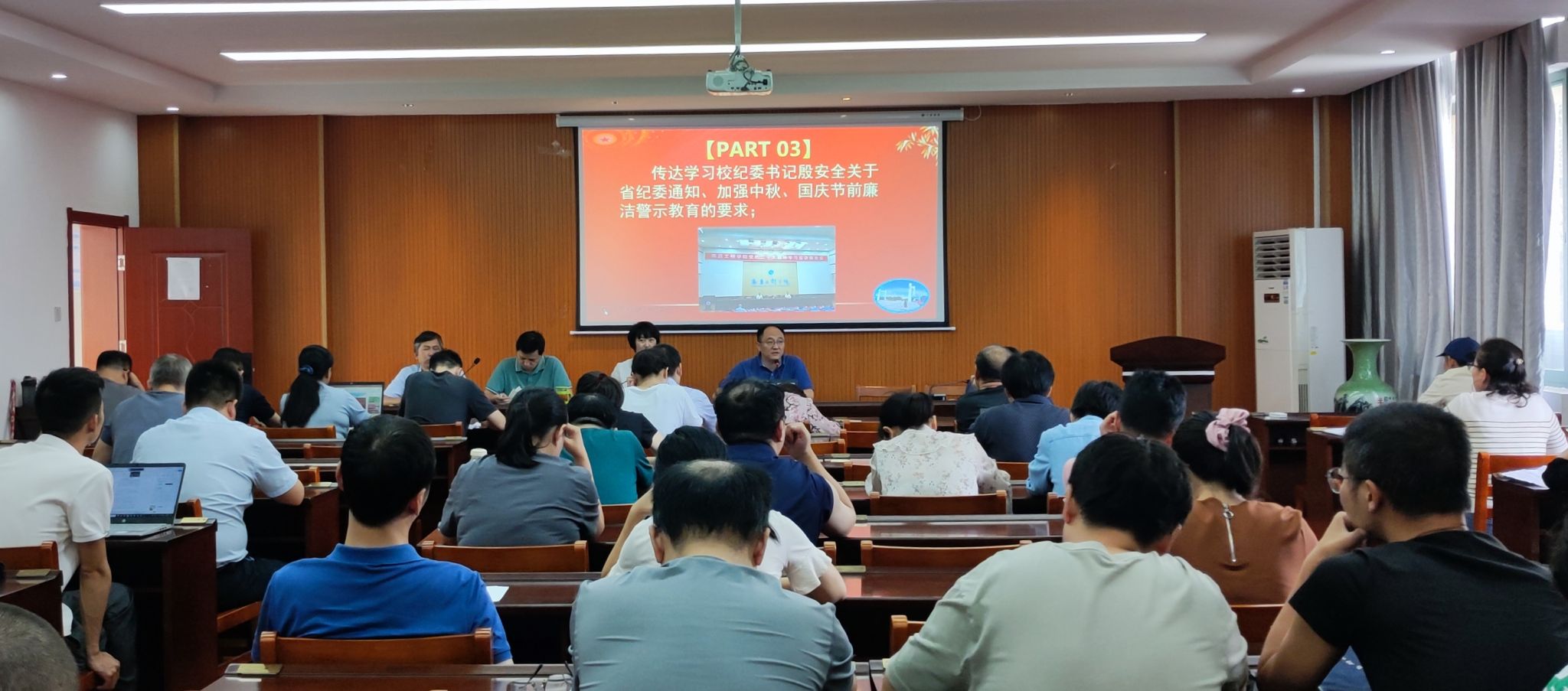 9月26日,在中秋、国庆佳节来临前夕,PA视讯平台召开全体教职工大会(政治理论学习),开展节前廉洁教育。