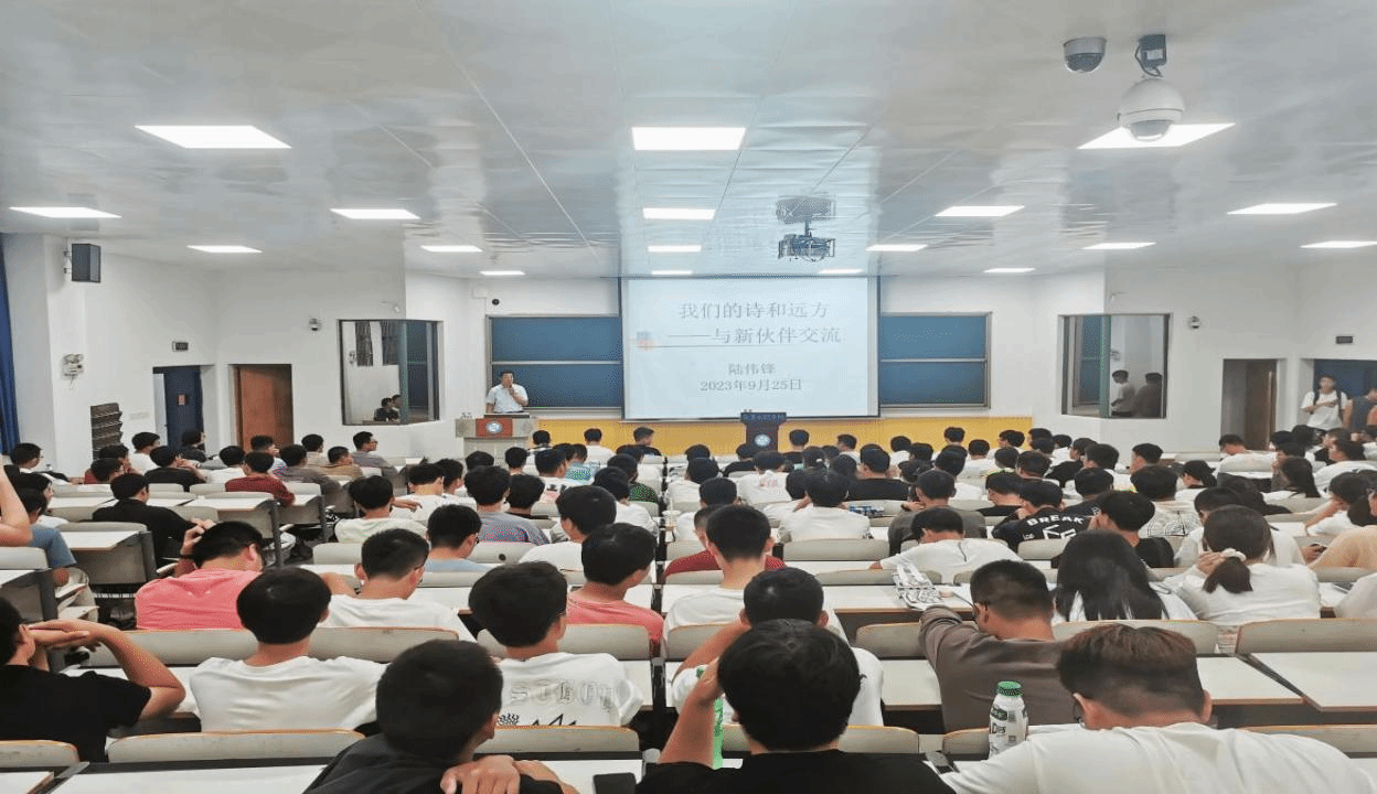 陆伟锋为2023级新生讲授“开学第一课”。课上,陆伟锋首先通过自身人生不同阶段的三张照片引发同学们思考,用质朴的语言与同学们分享了自己的成长经历和感悟,为同学们过好老员工活、融入公司发展指明方向,并强调作为青年员工,要立志做有理想,敢担当,能吃苦,肯奋斗的新时代好青年。