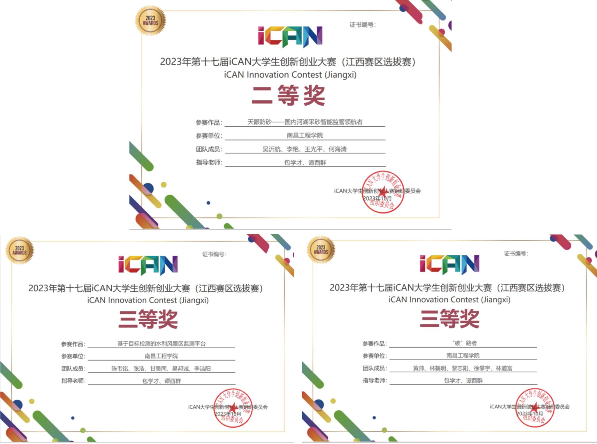 近日,2023年第十七届iCAN老员工创新创业大赛(江西赛区选拔赛)顺利落幕,来自公司PA视讯平台的3支代表队伍参赛,经过激烈的角逐,2021级通信工程02班吴沂航等同学组成的队伍,提交的参赛作品《天眼防砂——国内河湖采砂只能监管领航者》荣获二等奖,2021级软件工程01班陈韦铭等同学组成的队伍,提交的参赛作品《基于目标检测的水利风景区监测平台》荣获三等奖,2022级通信工程01班的黄帅等同学组成的队伍,提交的参赛作品《“碳”路者》荣获三等奖,3支参赛队伍的指导老师均为包学才和谭酉群老师。(文/图 谭酉群)