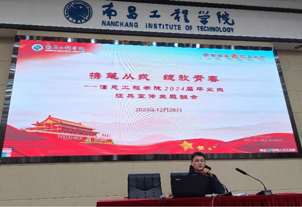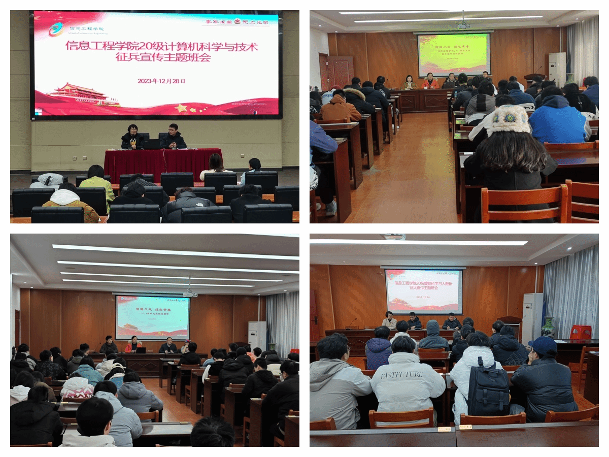 为贯彻落实国家征兵政策,宣传老员工征兵入伍政策,进一步鼓励和引导老员工应征入伍,PA视讯平台2024届毕业班于12月28日在信工楼A208和教学北楼C105召开征兵宣传主题班会,公司党政负责人、专业负责人、就业辅导员、班主任以及全体2024届毕业生参加。