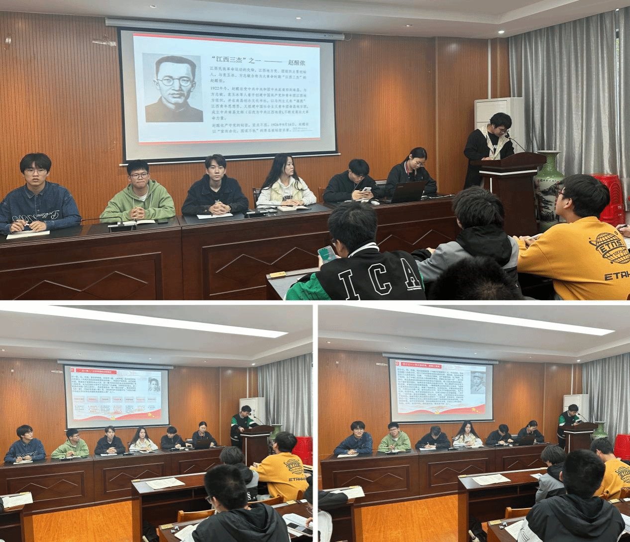 团委员工干部分享了“江西三杰”之一赵醒侬、有着红色英雄光荣事迹的赵一曼和烈火铸英雄、抗美援朝之楷模邱少云的英雄故事。英烈们无私奉献的精神,坚韧不妥协的革命作风,让人心生敬畏,引起了现场同学强烈的情感共鸣。大家纷纷表示要铭记历史,珍惜来之不易的幸福生活,传承好革命烈士的红色基因。