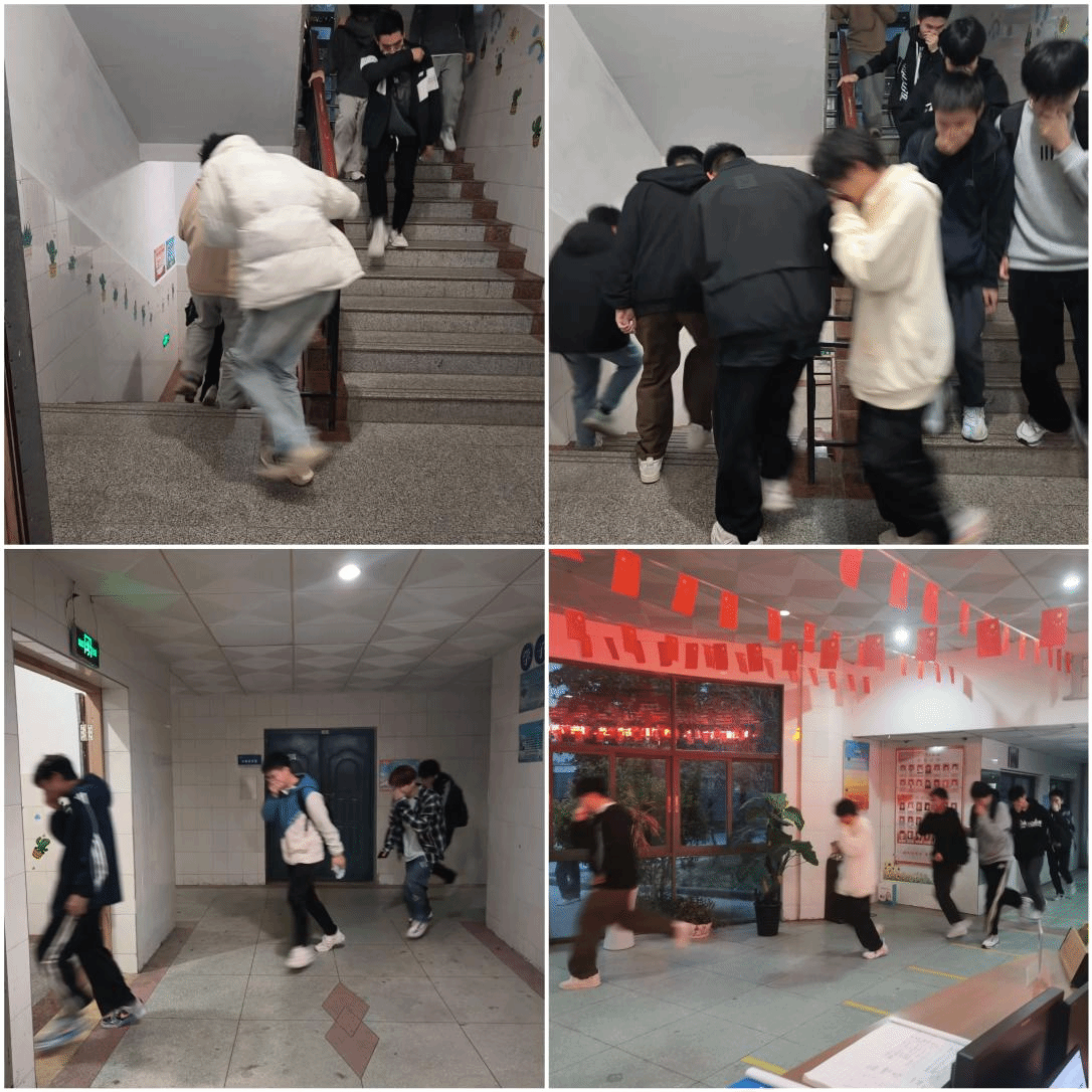 演练开始前,辅导员老师从火灾环境、逃生姿势及逃生路线等方面进行了细致的讲解,并明确指出在面对火灾危险时应沉着冷静、快速有序撤离。随着尖锐的警报声响起,员工干部立即向宿舍内员工进行大声示警,并提醒带好湿毛巾,捂住口鼻,低下身姿,保持沉着冷静,迅速通过安全通道撤离到安全区域。