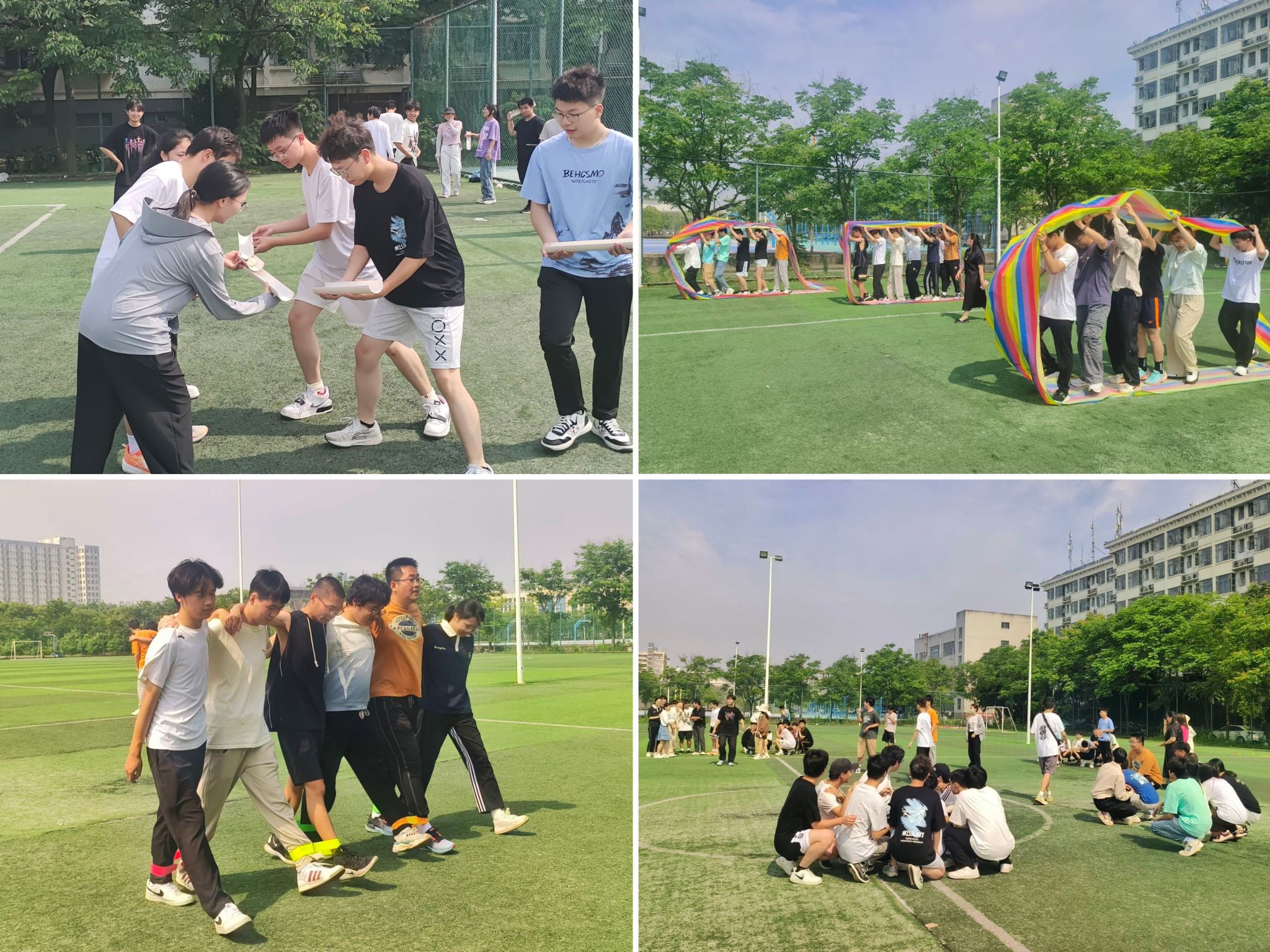 活动准备阶段,教练员详细介绍了活动内容、游戏规则以及注意事项。本次素质拓展活动内容分为“桃花朵朵开”、“车轮滚滚”、“能量传递”和“众志成城”四个环节,排名采取小组积分制,各个项目需要团队高度的协作和配合能力,极大的考验毅力和耐力。活动现场,每队队员都全情投入、群策群力、积极沟通,充分发挥团队协作精神,出色的完成了各个项目任务。