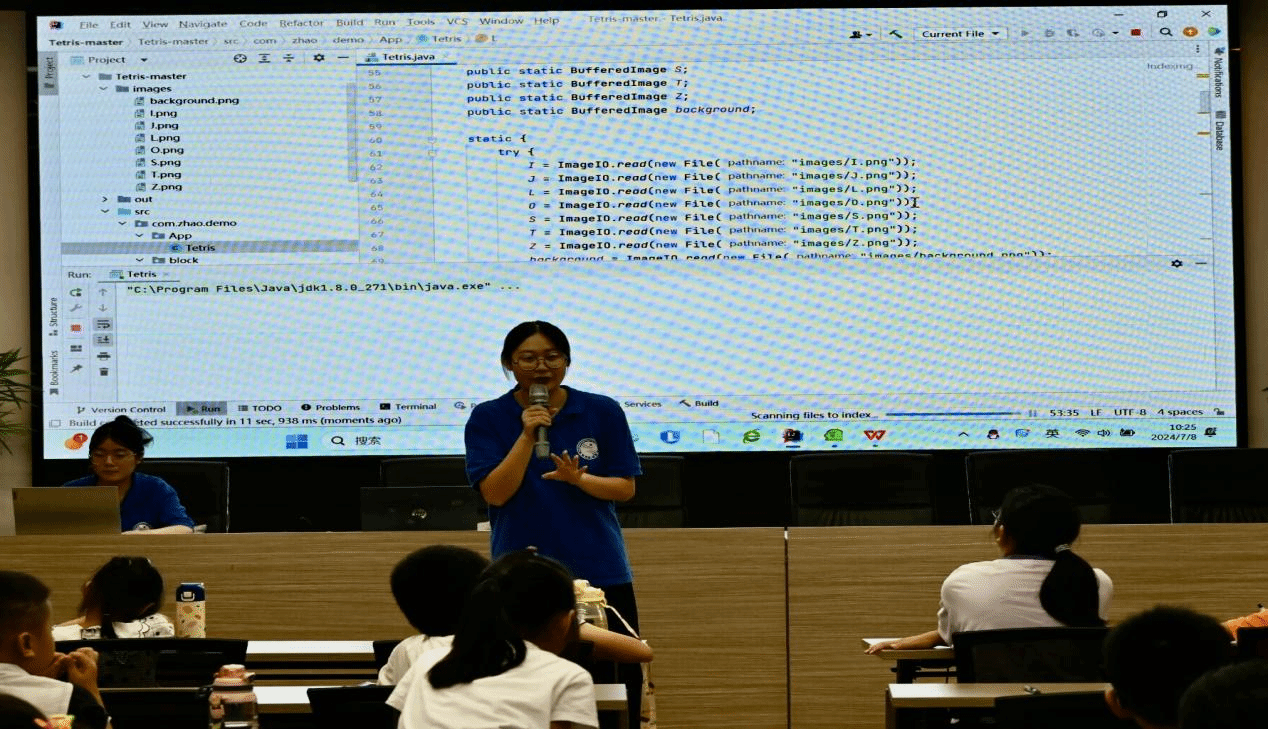 实践团前期了解到,新时代文明实践站有“童心港湾”项目,常态化开展关爱留守儿童各类活动,格外热闹。为给小朋友们带来多彩课堂,让孩子们在实践探究中走进科技世界,感受科学奥秘,播种小小科技梦,实践团开展科普课程、科普实验和科技活动,通过讲解科学的发展、编程的来源和魅力,运用专业知识,现场编写代码,展示编程的奇妙。结合动漫短片,以代码生成的小游戏进行课堂展示和试玩。另外,还进行了智能车组成讲解,以人工智能技术驱动智能车,通过亲身体验遥控智能车,为小朋友们带来科学知识的科普,激发孩子们对科学的兴趣,培养他们的科学实践能力,做好科学教育启蒙。针对孩子们提出各种“奇妙”问题,实践团成员用最生动、最耐心的话语一一解答,坚持“科学家要有一颗童心”理念,借科普托起孩子们的科学梦。