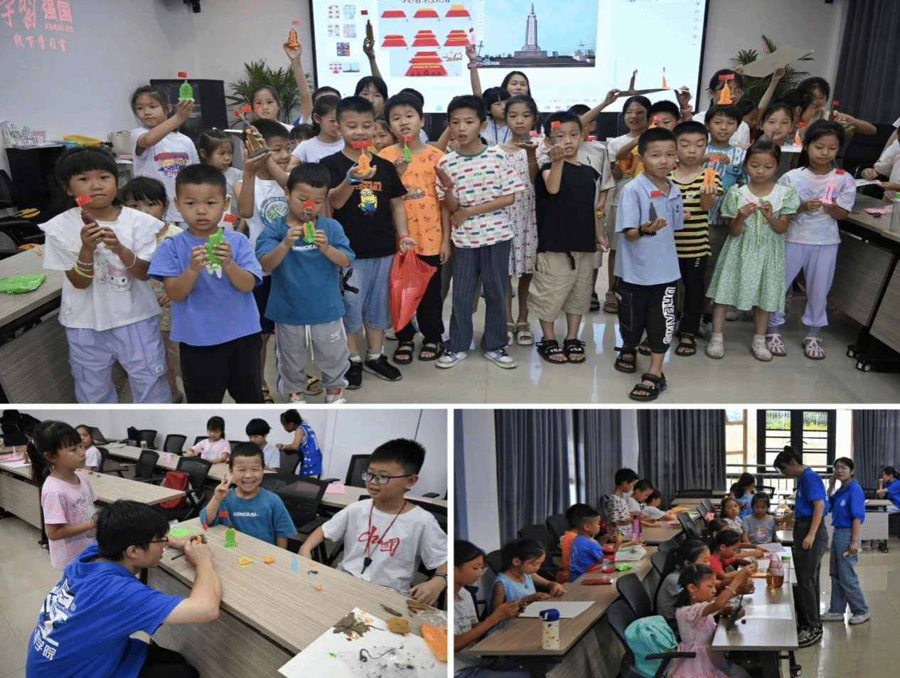 活动现场,实践团成员向小朋友们讲述了八一南昌起义的历史背景、原因和经过,并带领小朋友们用粘土制作庄严的八一南昌起义纪念塔模型,来表达对革命先烈的敬仰和追思。在实践团成员的指导下,小朋友们将《吃水不忘挖井人》改编成一部红色舞台剧,演绎了毛泽东在江西领导革命的时候,在沙洲坝带领人们深挖水井的故事。在实践团成员的带领下,小朋友们齐声高唱红歌《在灿烂阳光下》,表达对伟大祖国和伟大中国共产党的无限热爱和赞美之情。