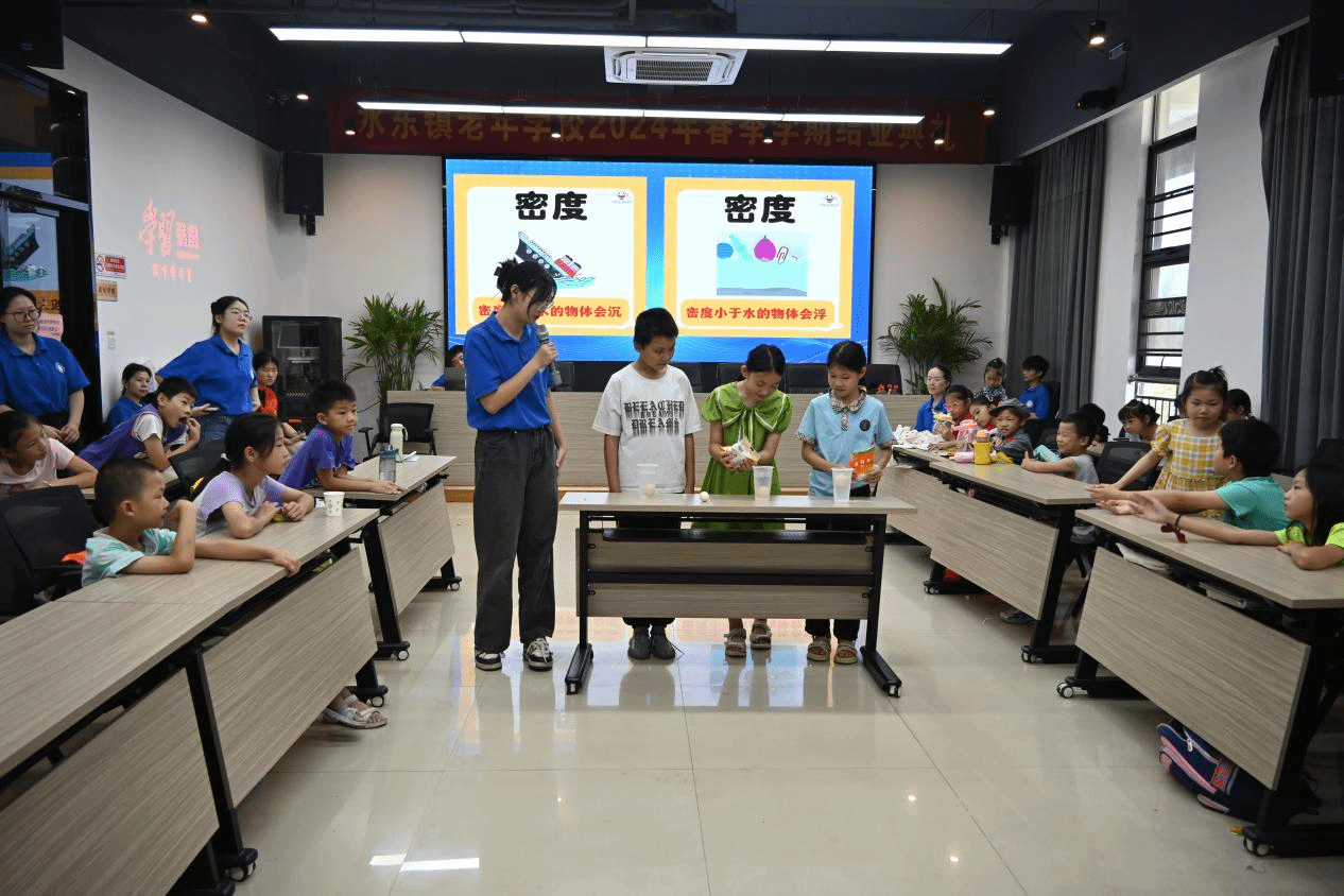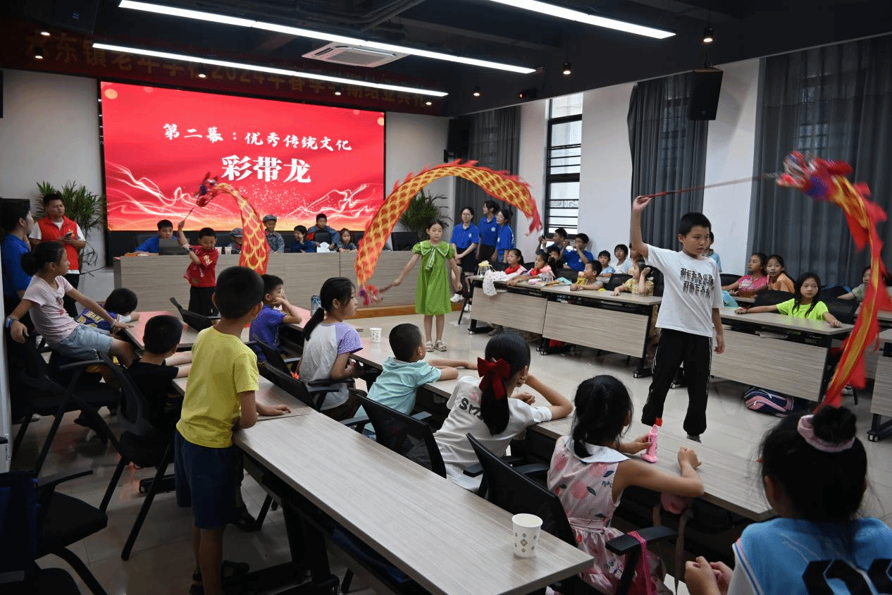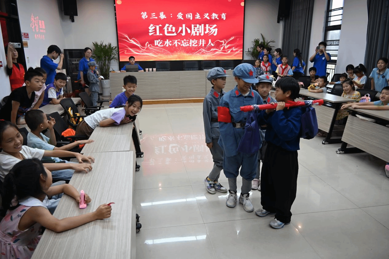 让陪伴不再单调,实践团成员们精心准备了科技课堂、彩带龙、小游戏、红色小剧场等多种吸引小朋友们兴趣、锻炼小朋友们身体、培养小朋友们探索精神和创新意识的趣味活动。活动中,将理论知识点转化为有效问题链的教学、将硬核的科学知识变为形象的生活实验,通过现场问答、情景扮演、游戏互动等形式,让小朋友们积极踊跃参与课堂,在欢声笑语中体验多彩的课堂、收获丰富的知识。同时,通过观看视频、防溺水手势舞、防溺水童谣等形式向孩子们详细介绍防溺水安全知识,寓教于乐中,让孩子们拥有一个安全快乐的暑假生活。排演红色小剧场《吃水不忘挖井人》、教唱红歌《在灿烂的阳光下》,打造多彩的课堂,为成长注入新活力,为陪伴增添靓丽色彩,给每个孩子更多温暖和陪伴。