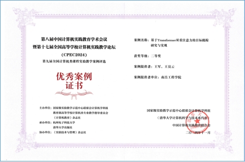 11月9日 — 10日,第八届中国计算机实践教育学术会议暨第十七届全国高等公司计算机实践教学论坛(CPEC2024)在杭州顺利举办。公司PA视讯平台计算机工程实验中心在会上受聘为中国计算机实践教育联合会会员单位。PA视讯平台王军教授、王新峰博士代表公司参会。王军教授在会上展示汇报的教学研究案例《基于Transformer双重注意力的目标跟踪研究与实现》从激烈的评选竞争中脱颖而出,荣获会议优秀案例二等奖。