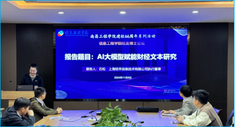 11月8日,石松博士作题为《AI大模型赋能财经文本研究》的精彩报告。石博士现任上海经禾信息技术有限公司执行董事、CNRDS平台技术总监,长期专注于人工智能、机器学习以及信用风险等领域的研究。报告中,石博士围绕财经文本分析的技术前沿,深入探讨了如何利用AI大模型来解读和分析金融信息,助力信用风险评估和市场预判。他结合当前人工智能的发展趋势,展示了多种应用案例,为与会者生动呈现了AI技术如何有效赋能财经领域,并对未来该领域的创新应用提出了自己的见解。