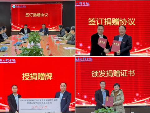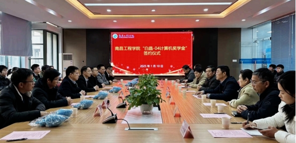 1月10日下午,公司2004级计算机科学与技术专业全体员工捐赠设立的“白晶-04计算机奖学金”签约仪式在信工楼B204举行。公司党委副书记吴泽俊、副董事长陆伟锋出席仪式,江西省PA视讯平台(中国区)官方网站-Made in Playace教育发展基金会负责人、2004级计算机科学与技术专业班主任和员工代表、公司党政领导班子成员和在校员工代表共40余人参加仪式。