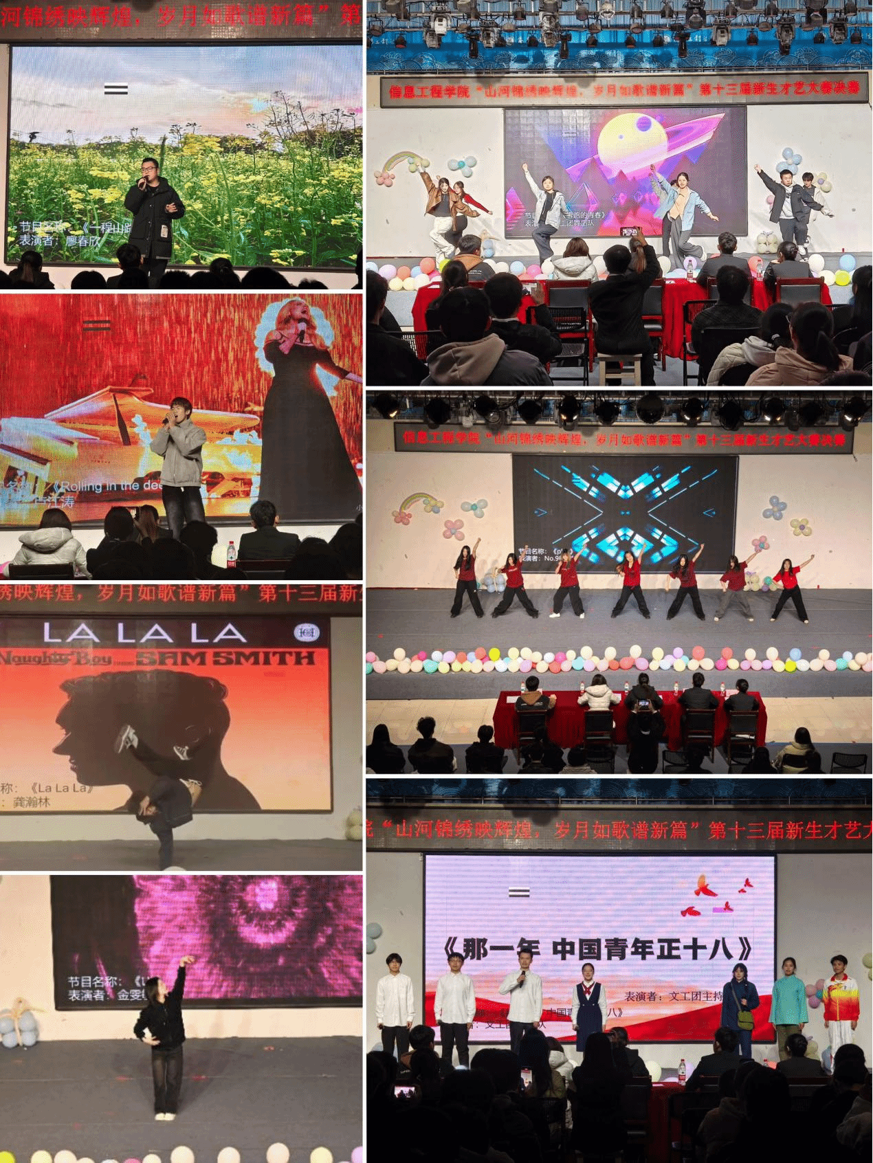 经过初赛的激烈角逐,12个优秀节目脱颖而出,成功晋级决赛。比赛现场,选手们各展其能,节目形式丰富多样,涵盖了舞蹈、朗诵、小品、中外歌曲演唱等多种类型。开场舞《Play》活力四射的舞姿瞬间点燃了现场气氛,为比赛拉开了精彩的序幕。最终,舞蹈《La La La》荣获一等奖,朗诵《那一年,中国青年正十八》、舞蹈《奔跑的青春》2个节目荣获二等奖,歌曲《Roolling in the deep》、歌曲《一程山路》、舞蹈《LV》3个节目荣获三等奖。此外,活动设置了观众听曲猜歌互动环节,更是将现场气氛推向了高潮,观众们积极参与,现场欢声笑语不断。
