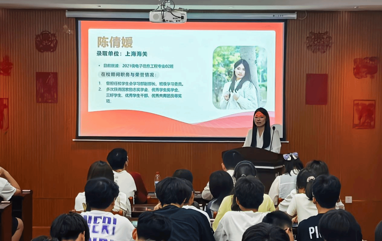 陈倩媛聚焦学业与责任同行,分享了作为一名家庭困难学子自立自强的奋斗历程,重点介绍了她备考国家公务员考试的经验,已被上海海关录用为公务员的她强调:“逆境不是终点,而是重塑自我的起点。”