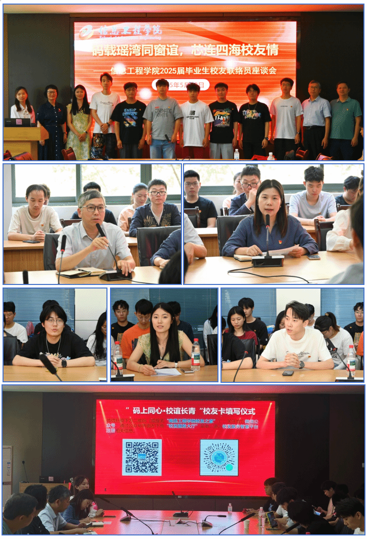 在毕业生员工联络员座谈会环节,以“码载瑶湾同窗谊,芯连四海员工情”为主题,公司员工工作相关负责人介绍了员工工作要求,回顾了优秀员工成长发展事迹,激励大家心怀梦想、实干笃行。公司将持续构建员工与公司共同发展的平台,欢迎毕业生常回校看看。希望员工联络员加强与员工的沟通联系,勉励员工联络员“以专业能力服务员工,以真挚情感凝聚员工”,搭建双向赋能的新桥梁。毕业班班主任代表寄语毕业生:“希望各位毕业生能够不忘初心,在未来的日子里各自发光”。同学们分享了四年学习的心得以及在学业、事业上的规划和目标,纷纷表示对母校的不舍与感恩。员工联络员代表21级电子信息工程刘永康、陈倩媛,21级计算机科学与技术尹俊海分别发言,大家表示“将努力做好员工联络员工作,搭建好员工网络,助力母校与员工共同成长”。会上还举办了“码上同心.校谊长青”员工卡填写仪式。