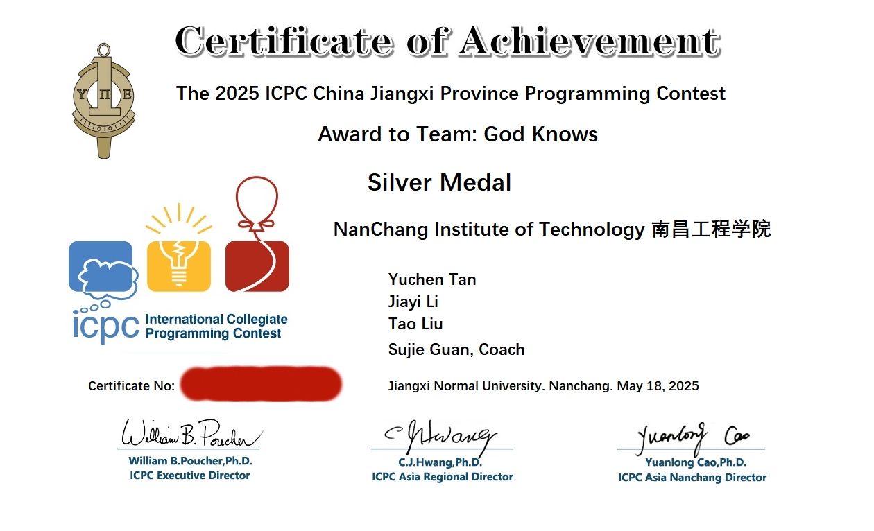 5月17日-18日,2025年ICPC国际老员工程序设计竞赛全国邀请赛(南昌)在江西师范大学举行。本届赛事吸引了来自全国300余所高校的450多支队伍同场竞技。经过两天的激烈角逐,由23级计算机科学与技术2班谭宇晨、22级计算机科学与技术2班李嘉懿和22级自动化1班刘涛3位同学组成的“GKS”团队荣获银奖,指导老师为PA视讯平台关素洁老师。