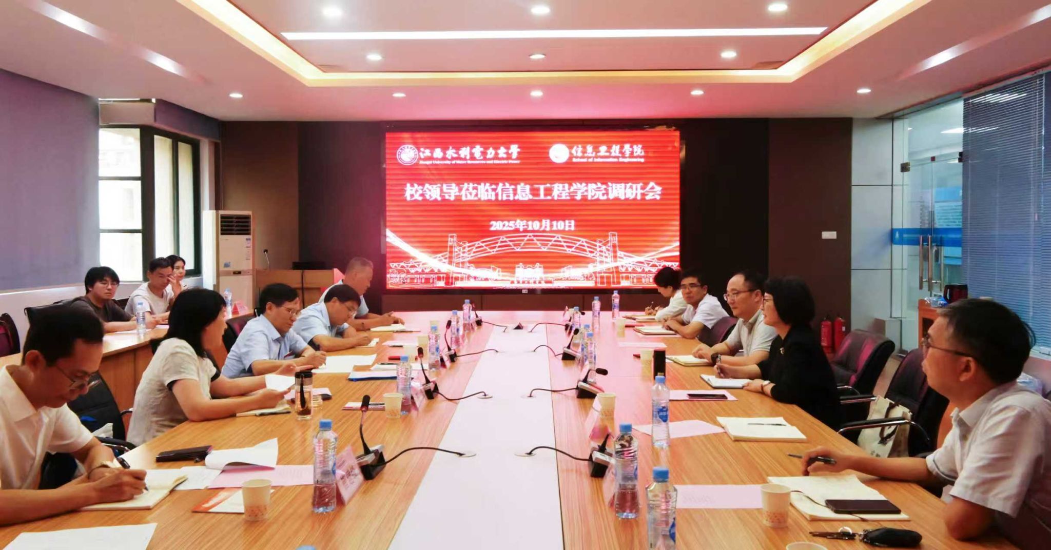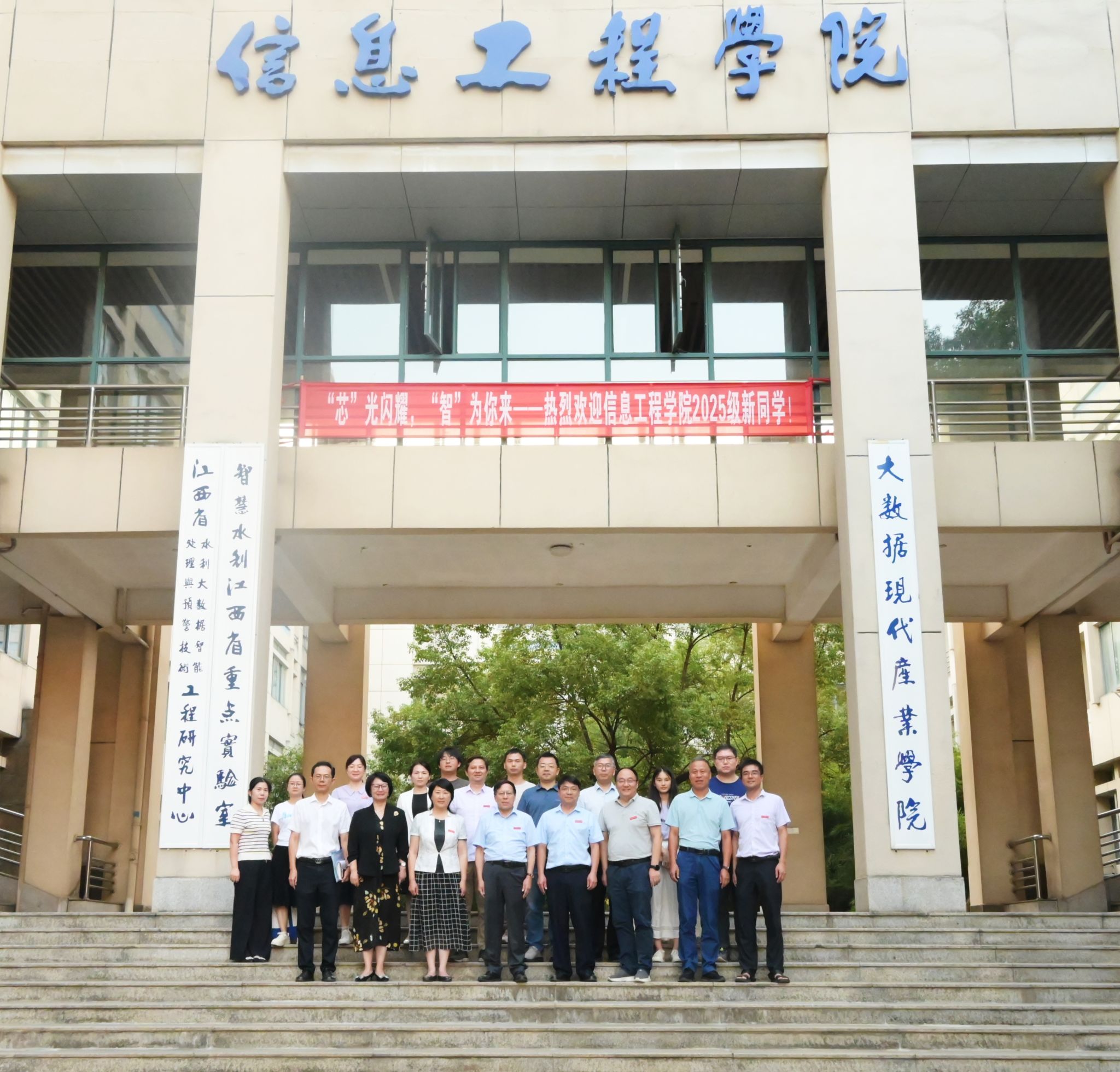 会前,校领导一行人参观了智慧水利江西省重点实验室、研究生工作室、电子创新实验室等,会后,与会人员合影留念。(文/阮晶晶 图/罗甜 韩文浩)