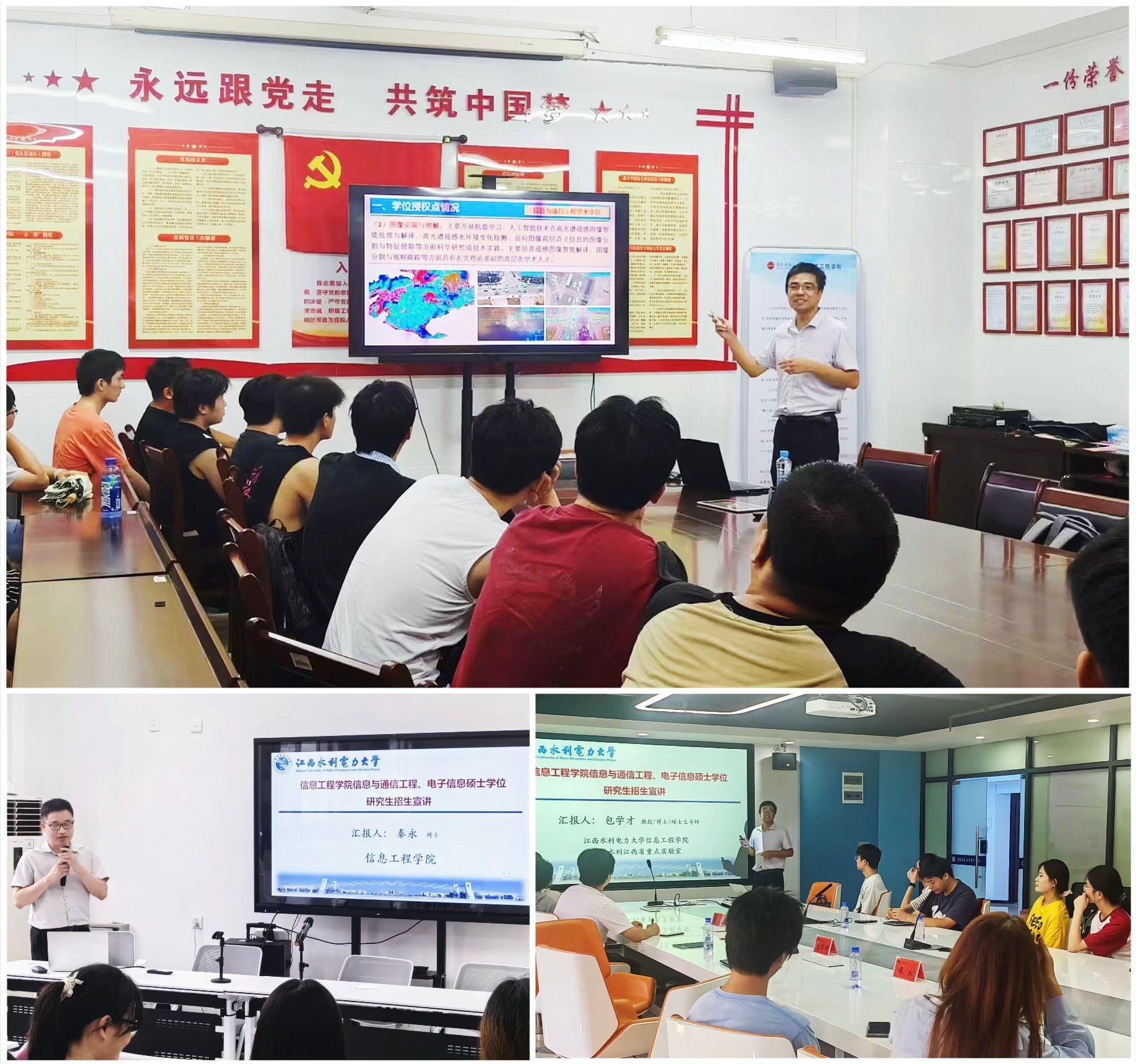 9 月 17 日,教师团队按时段高效推进宣讲:上午抵达萍乡公司,面向相关专业本科生,系统介绍介绍两大硕士专业的研究领域、招生计划及考试科目,并针对备考重点难点提供具体指导;下午转场新余公司,聚焦公司专业特色,详细解读招生政策、就业前景等核心问题,现场逐一解答员工关于跨专业报考、复试流程等疑问。次日,团队前往九江公司,结合该校学科特色开展综合宣讲,既阐述信息与通信工程专业的学术优势,也说明电子信息专业的名额分配、奖助政策,通过案例分享让员工直观了解升学价值。