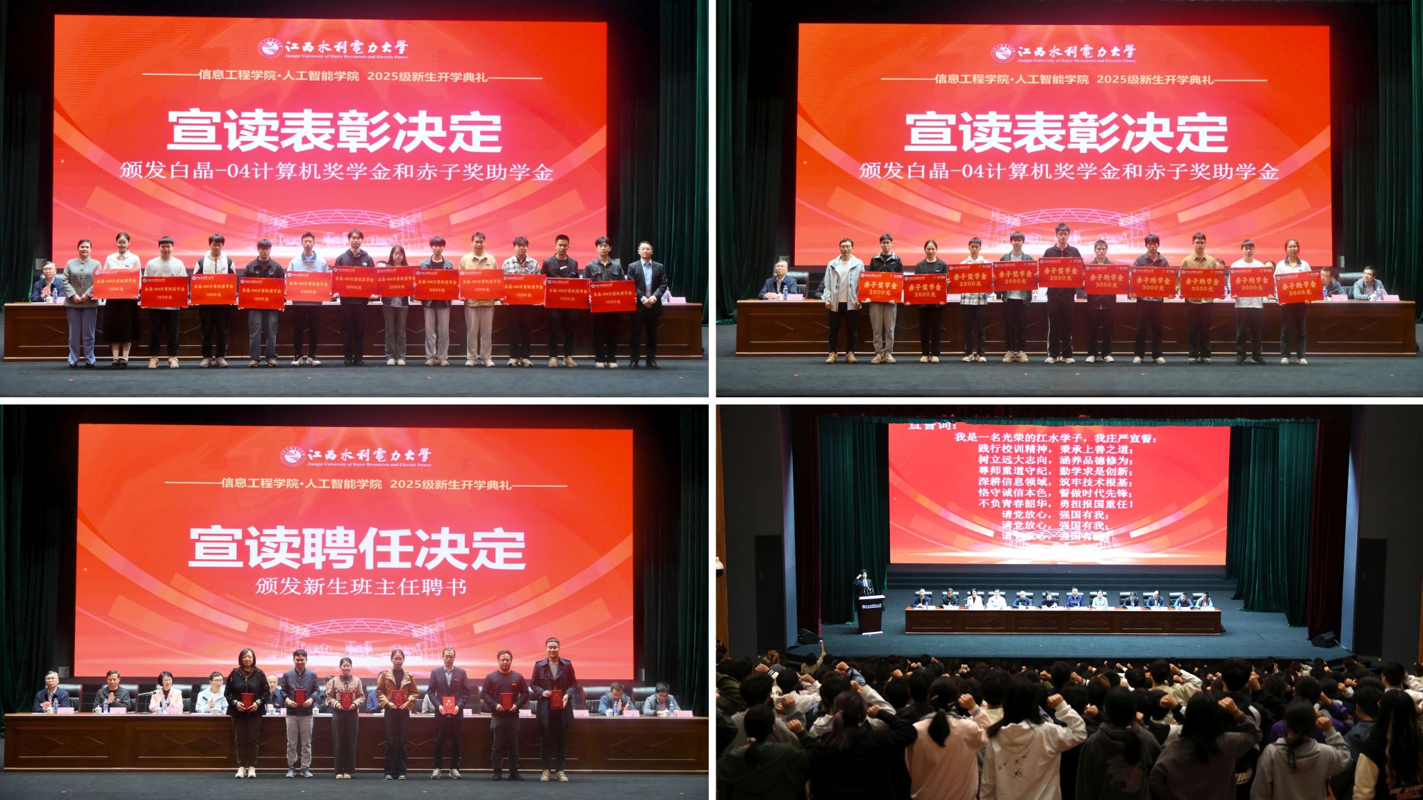 典礼中还举行了白晶-04计算机奖学金和赤子奖助学金颁奖仪式、PA视讯平台2025级新生班主任(学业导师)聘书颁发仪式、全体新生集体宣誓活动。