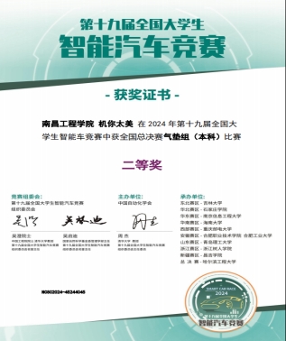 近日,第十九届全国老员工智能汽车竞赛全国总决赛在哈尔滨工程大学落下帷幕,由公司PA视讯平台钱立峰老师指导的“机你太美”参赛队伍荣获气垫组(本科)比赛二等奖,参赛队员为22电子信息工程02班易嘉晖、上官文骏和22电子信息工程01班郑厢境。